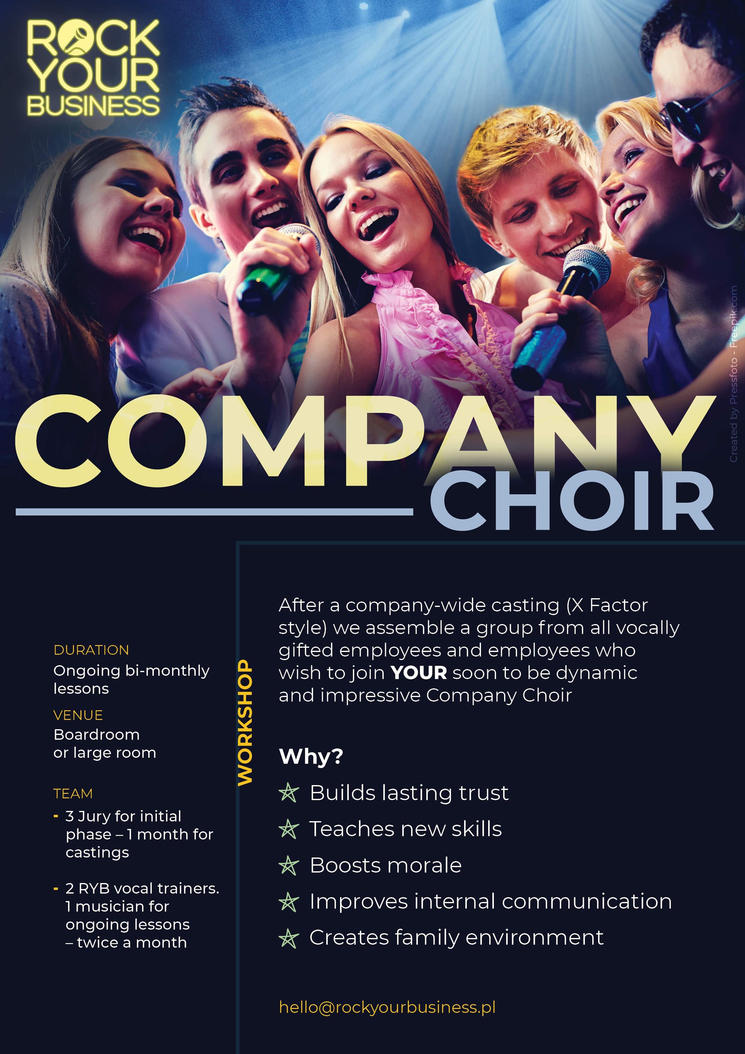 Rock Your Business – The ONLY team building and conference formats in CEE using the power of group singing to help companies achieve their objectives.